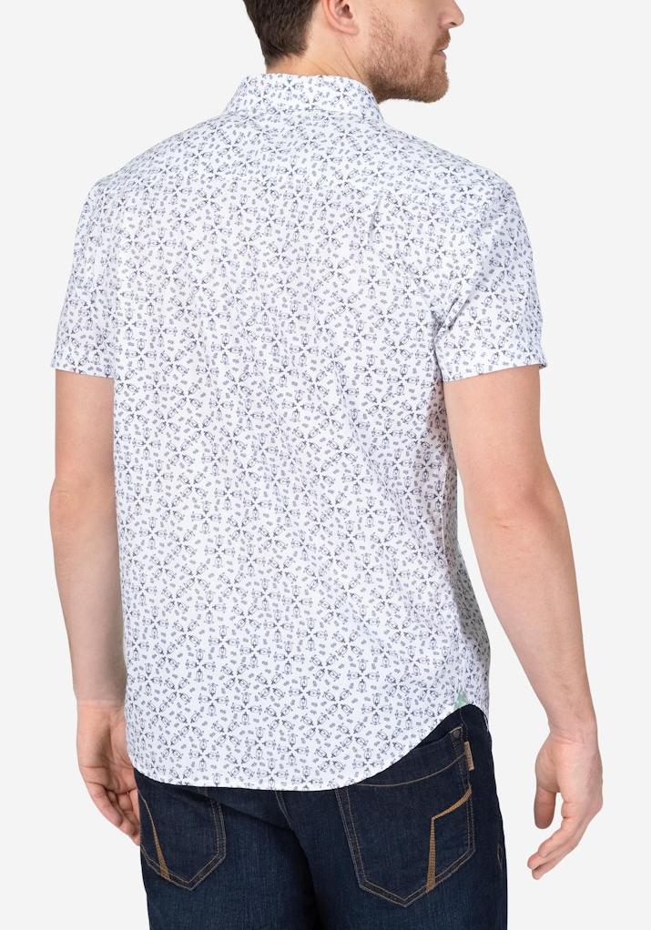 Ein Sommerklassiker mit modernem Twist: Dieses Kurzarmhemd von TIMEZONE überzeugt mit seinem feinen, dunkelblauen Allover-Print auf weißem Grund. Das dezente Muster wirkt stilvoll und frisch zugleich – perfekt für Citytrips, Gartenpartys oder den entspannten Bürolook.
